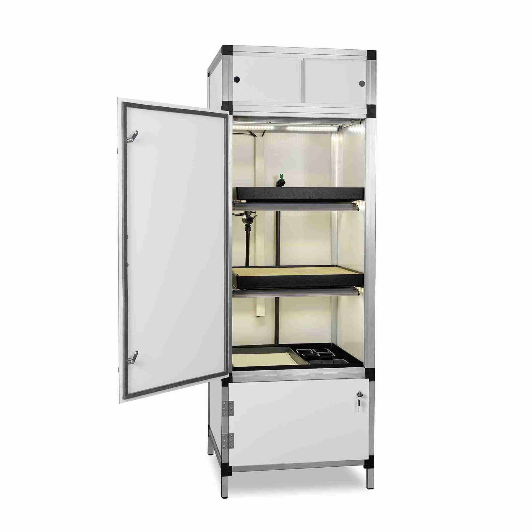 If desired, you can have your nursery grow cabinet fitted with a plexiglass door.